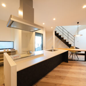 姫路市/グレーのⅡ型キッチンが主役の平屋|効率動線で心地よく暮らす家