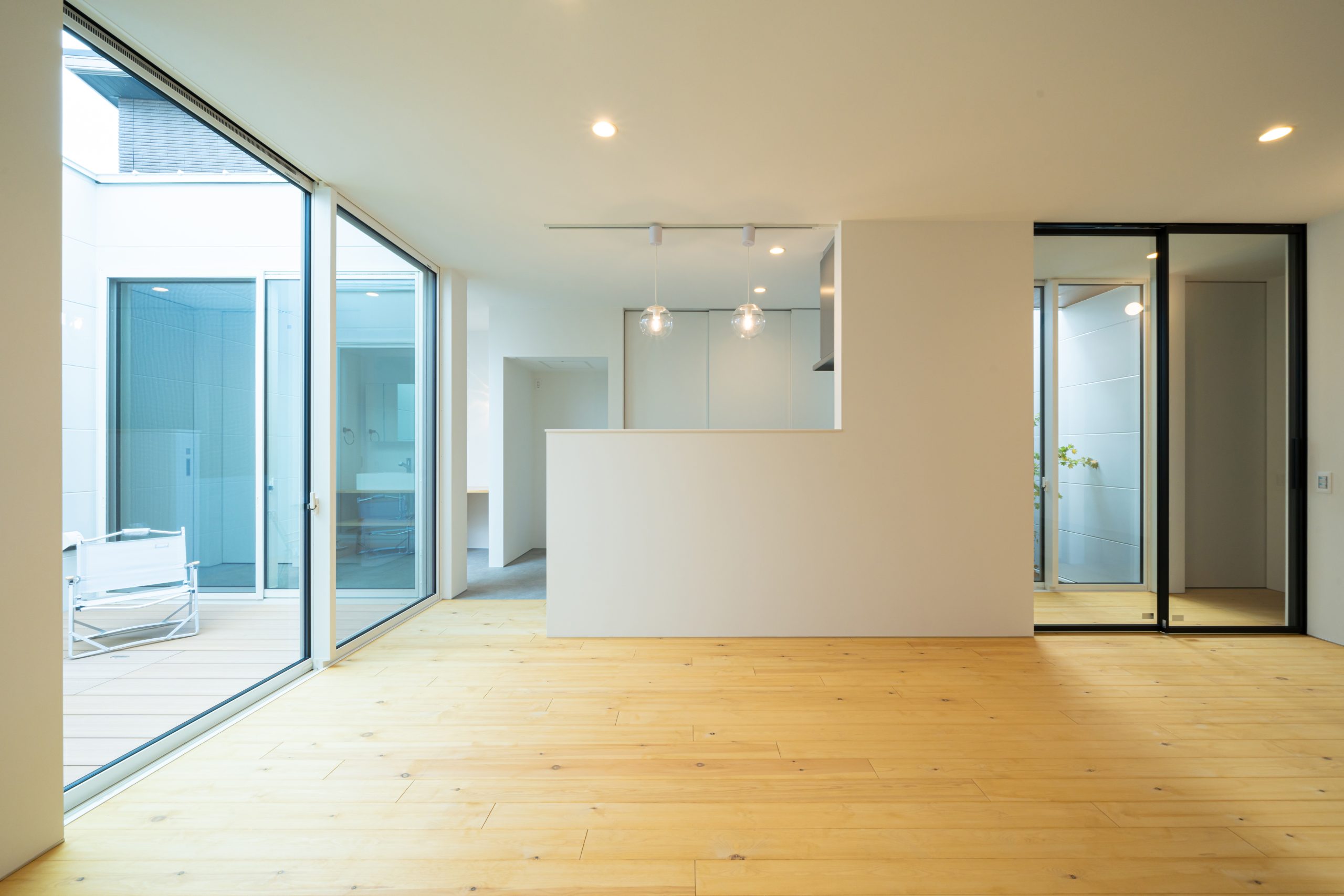 開放的なLDKは庭を中央に配置しどこにいても自然光で明るい空間に。